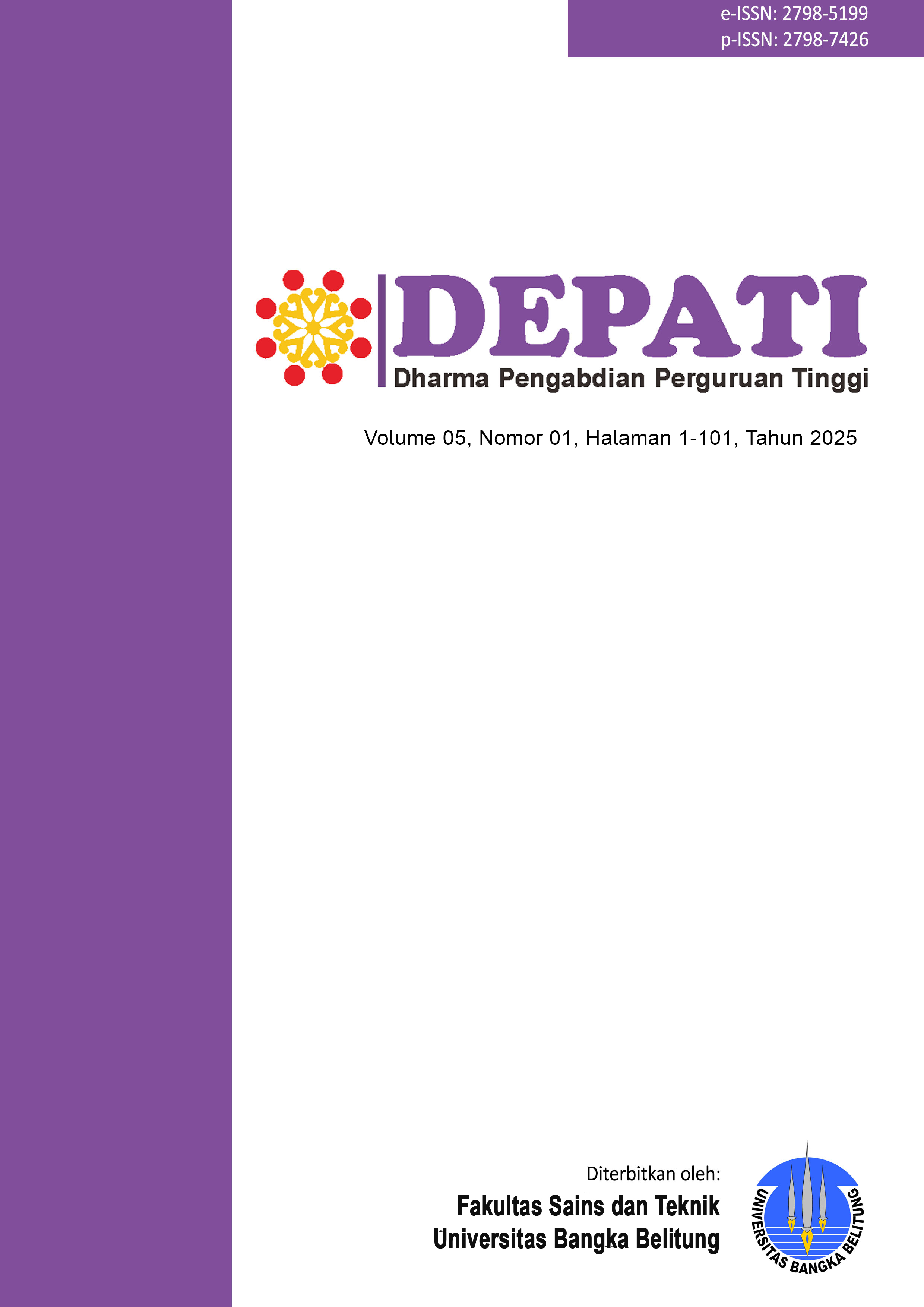 Vol. 2 No. 1 (2022)Pada DEPATI Volume 2 No 1 Tahun 2022 memiliki 59 halaman yang terdiri dari 9 artikel hasil Pengabdian Kepada Masyarakat. Penulis pada edisi ini berasal dari Universitas Maritim Raja Ali Haji, UPN Veteran Jakarta, Universitas Negeri Semarang, Universitas Timor, dan Universitas Bangka Belitung.