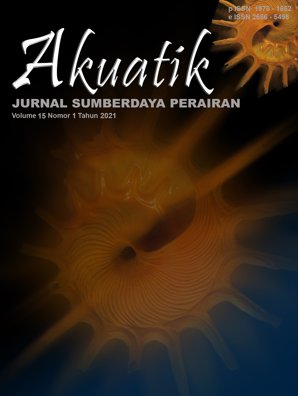 Vol. 15 No. 2 (2021)Akuatik merupakan jurnal sumberdaya perairan yang diterbitkan secara berkala oleh Fakultas Pertanian, Perikanan dan Biologi Universitas Bangka Belitung. Jurnal ini memuat makalah hasil penelitian, catatan hasil penelitian, artikel ulas balik, dan ulasan penelitian mengenai oseanografi, limnologi, biologi perairan, produktivitas perairan, pencemaran perairan, lingkungan pesisir dan masalah lainnya yang relevan