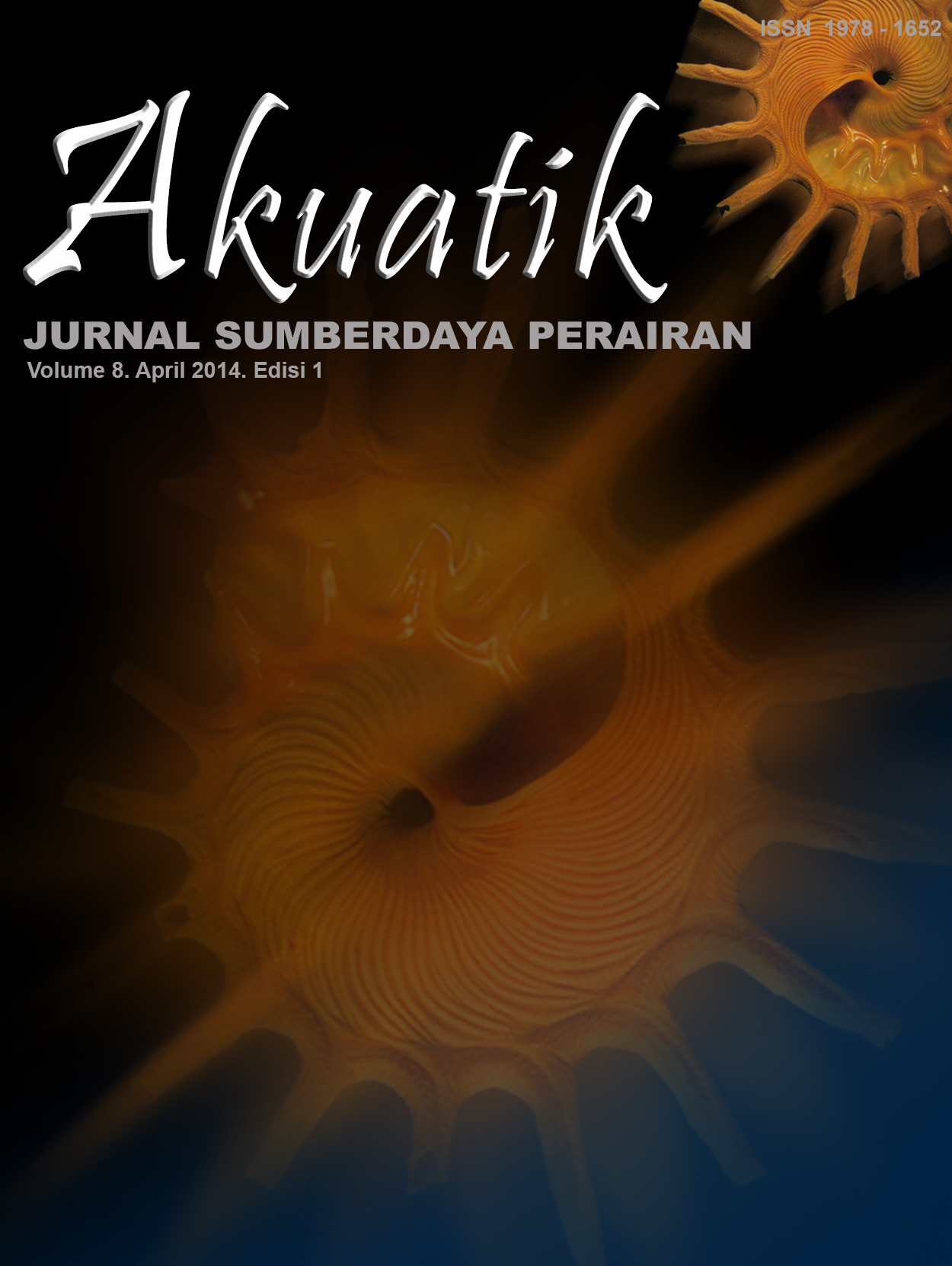 Vol. 8 No. 1 (2014)Akuatik merupakan jurnal sumberdaya perairan yang diterbitkan secara berkala oleh Fakultas Pertanian, Perikanan dan Biologi Universitas Bangka Belitung. Jurnal ini memuat makalah hasil penelitian, catatan hasil penelitian, artikel ulas balik, dan ulasan penelitian mengenai oseanografi, limnologi, biologi perairan, produktivitas perairan, pencemaran perairan, lingkungan pesisir dan masalah lainnya yang relevan