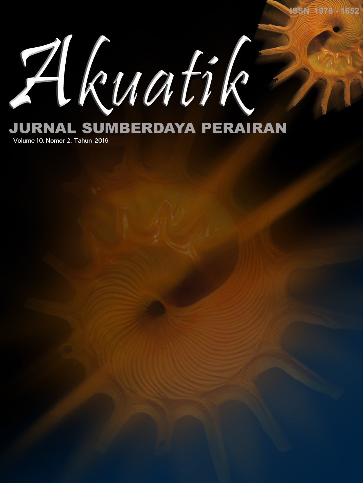 Vol. 10 No. 2 (2016)Akuatik merupakan jurnal sumberdaya perairan yang diterbitkan secara berkala oleh Fakultas Pertanian, Perikanan dan Biologi Universitas Bangka Belitung. Jurnal ini memuat makalah hasil penelitian, catatan hasil penelitian, artikel ulas balik, dan ulasan penelitian mengenai oseanografi, limnologi, biologi perairan, produktivitas perairan, pencemaran perairan, lingkungan pesisir dan masalah lainnya yang relevan