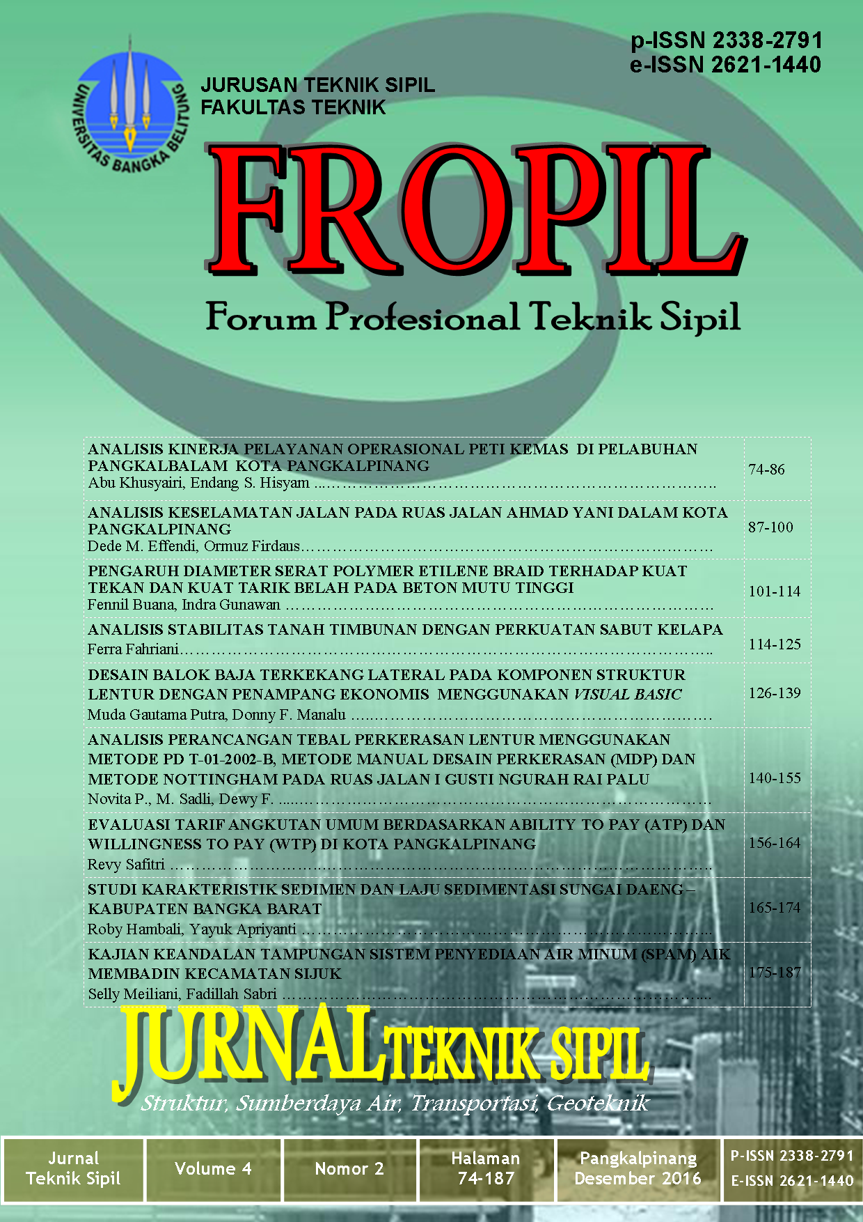 DESAIN BALOK BAJA TERKEKANG LATERAL PADA KOMPONEN STRUKTUR LENTUR DENGAN PENAMPANG EKONOMIS MENGGUNAKAN VISUAL BASIC. (2016). FROPIL (Forum Profesional Teknik Sipil), 4(2), 126-139. https://doi.org/10.33019/fropil.v4i2.1243
