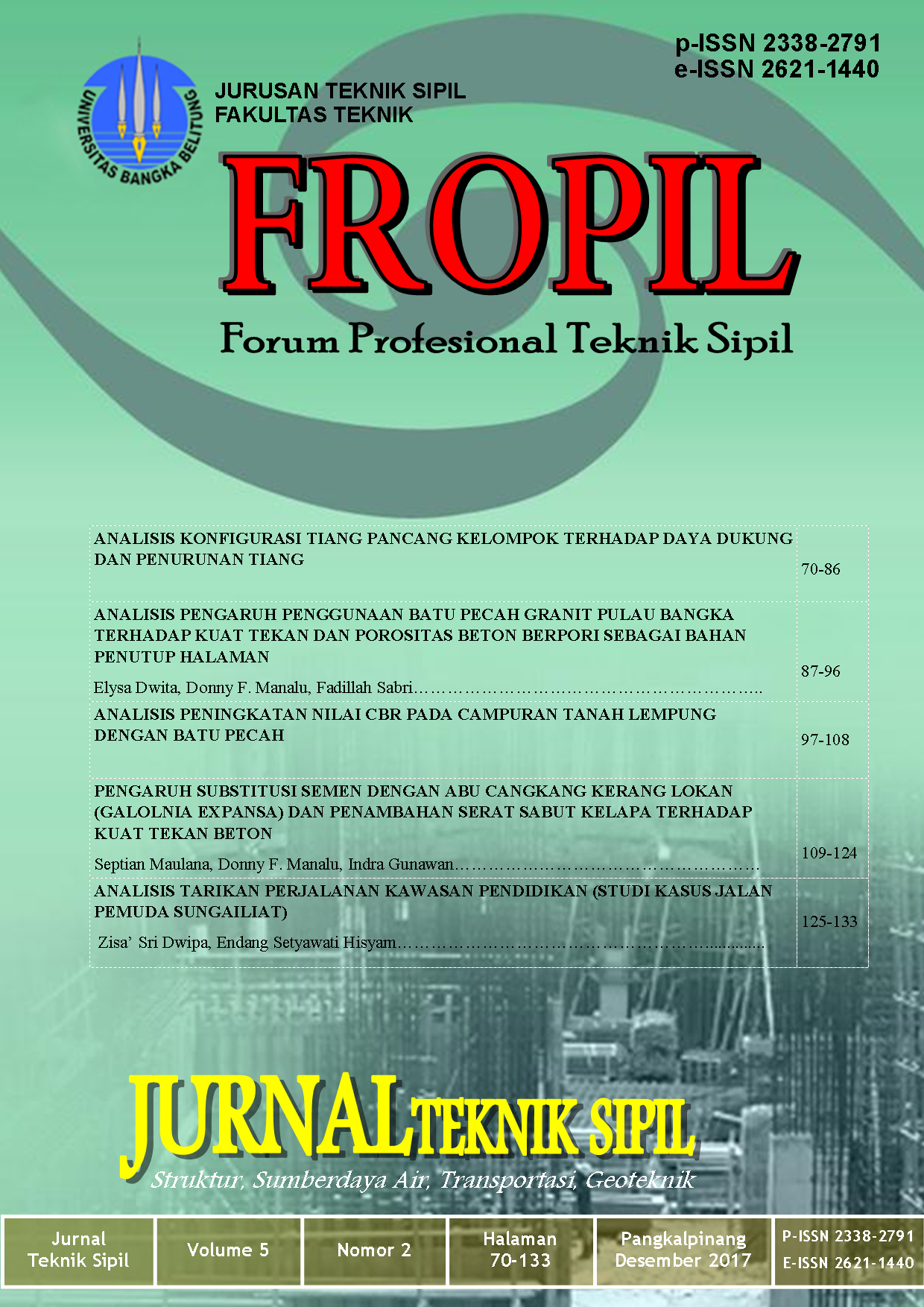 PENGARUH SUBTITUSI SEMEN DENGAN ABU CANGKANG KERANG LOKAN (GALOLNIA EXPANSA) DAN PENAMBAHAN SERAT SABUT KELAPA TERHADAP KUAT TEKAN BETON. (2017). FROPIL (Forum Profesional Teknik Sipil), 5(2), 108-123. https://doi.org/10.33019/fropil.v5i2.1257