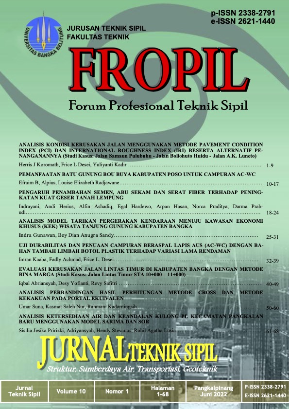 Air Mesu Village and Jeruk Village are two villages located in Pangkalan Baru District, Central Bangka Regency, Bangka Belitung Islands Province. The number of residents in the village increases every year, so that causes problem, the problem is needs of clean water will be increas. The solution to this problem is to use Kulong PL water as a source of raw water to meet the needs of clean water in Air Mesu Village and Jeruk Village. To ensure the availability of Kulong PL water is able to meet the needs of clean water in Air Mesu Village and Jeruk Village, a prediction will be made for the next 10 years, starting from 2021 to 2030. From the analysis results, the best model for predicting is SARIMA (0 ,0,0)(1,1,0)12 . Based on the SOR analysis, the best option in using Kulong PL is to focus on one village only. If the use of Kulong PL likes 100% then the permitted use is 3,06 l/det. As for Jeruk Village, Kulong PL is able to supply 100% of the needs with a 99% weight level.